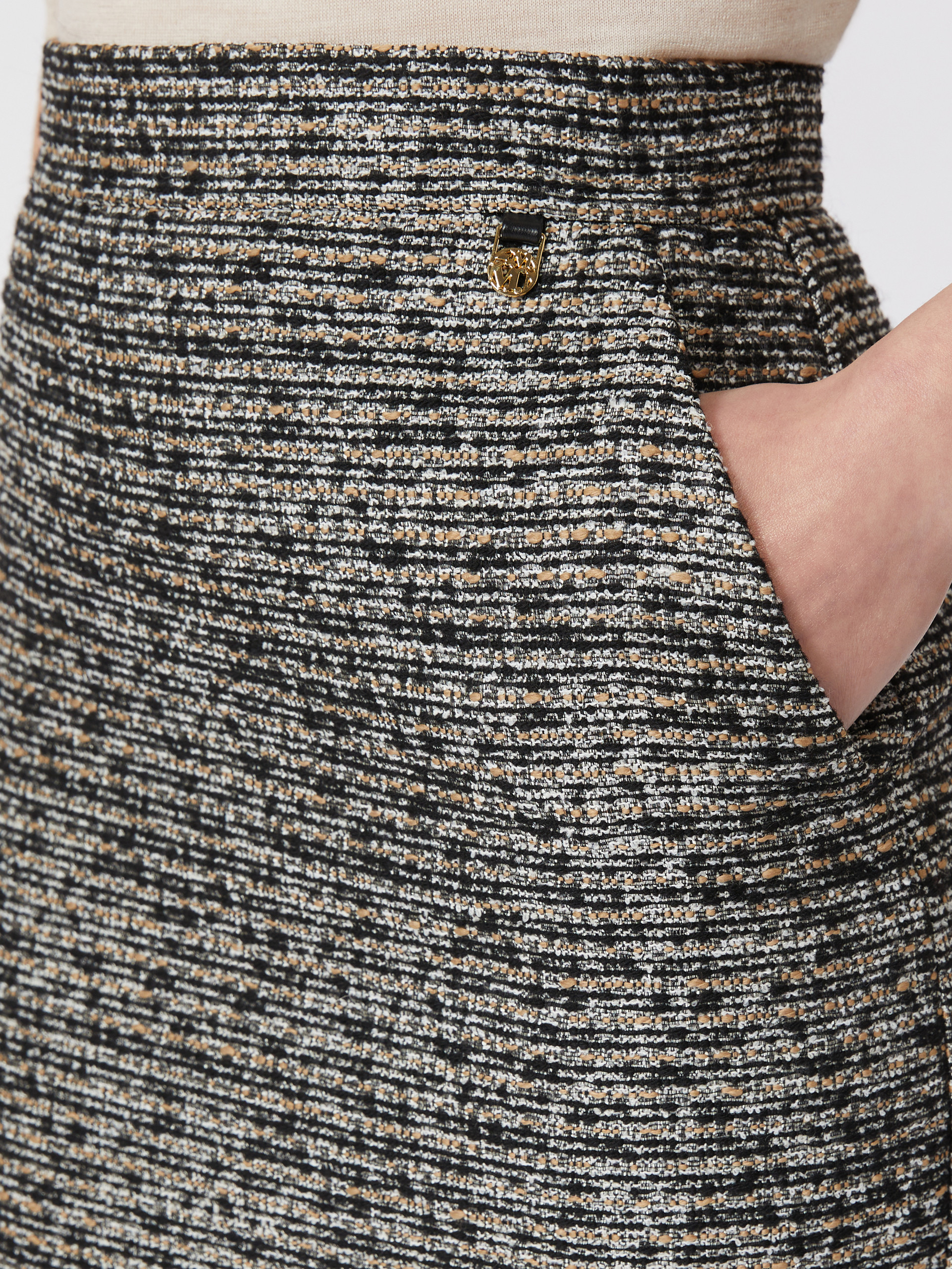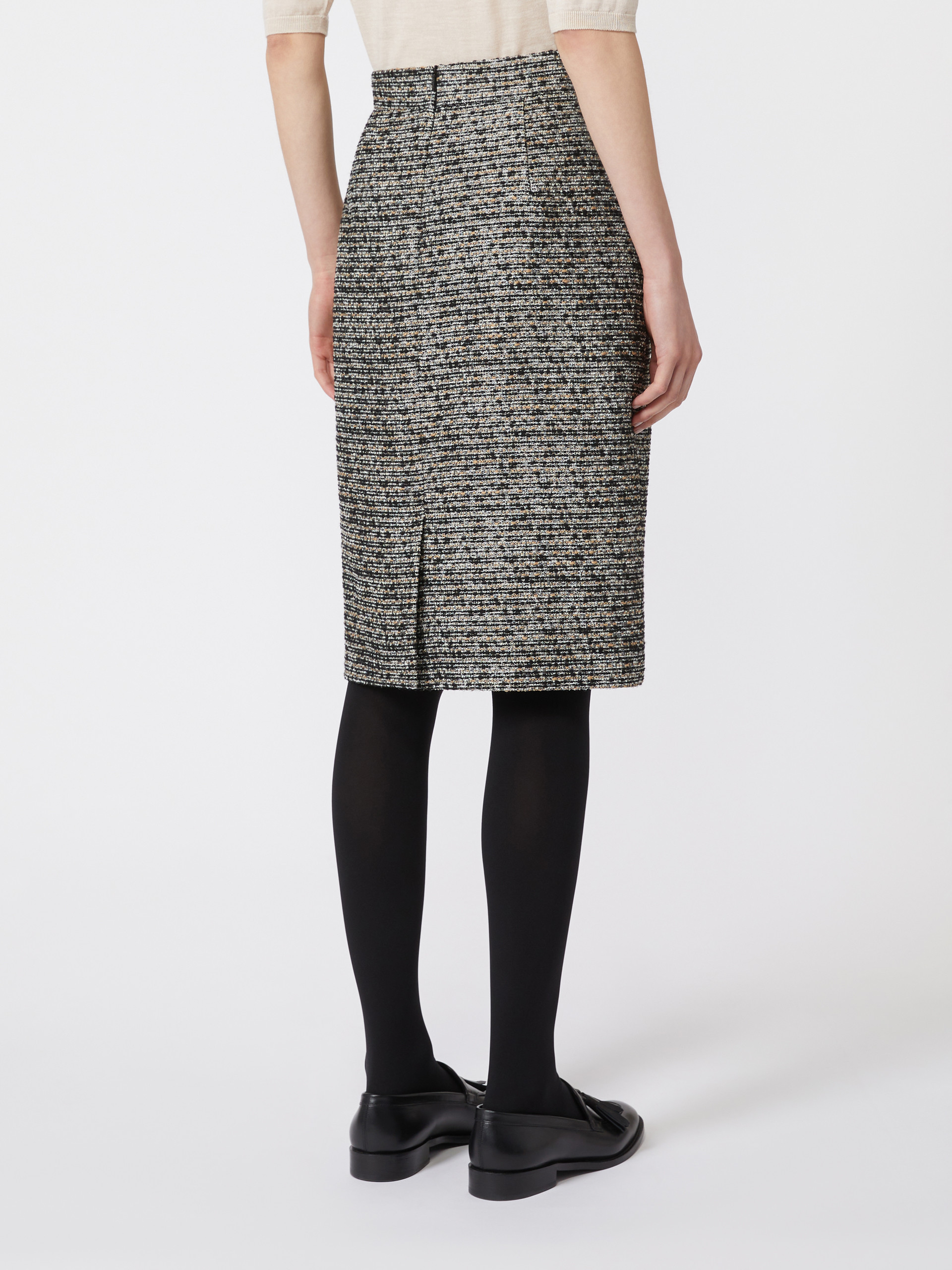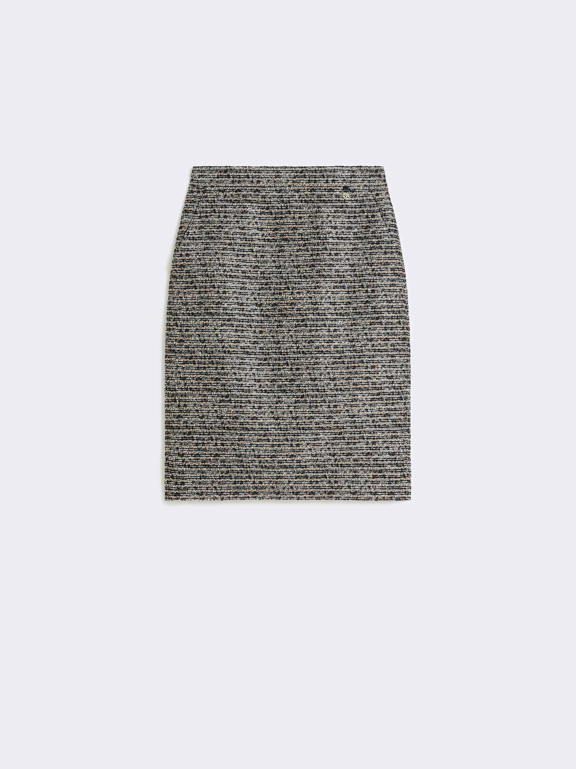 Short pencil skirt with a central rear slit. - Wool basketweave skirt - Slim, straight fit - Concealed zip fastening at the back - Slant side pockets - Branded tag on the front left-hand side - Sewn darts on the back of the waist - Lined model