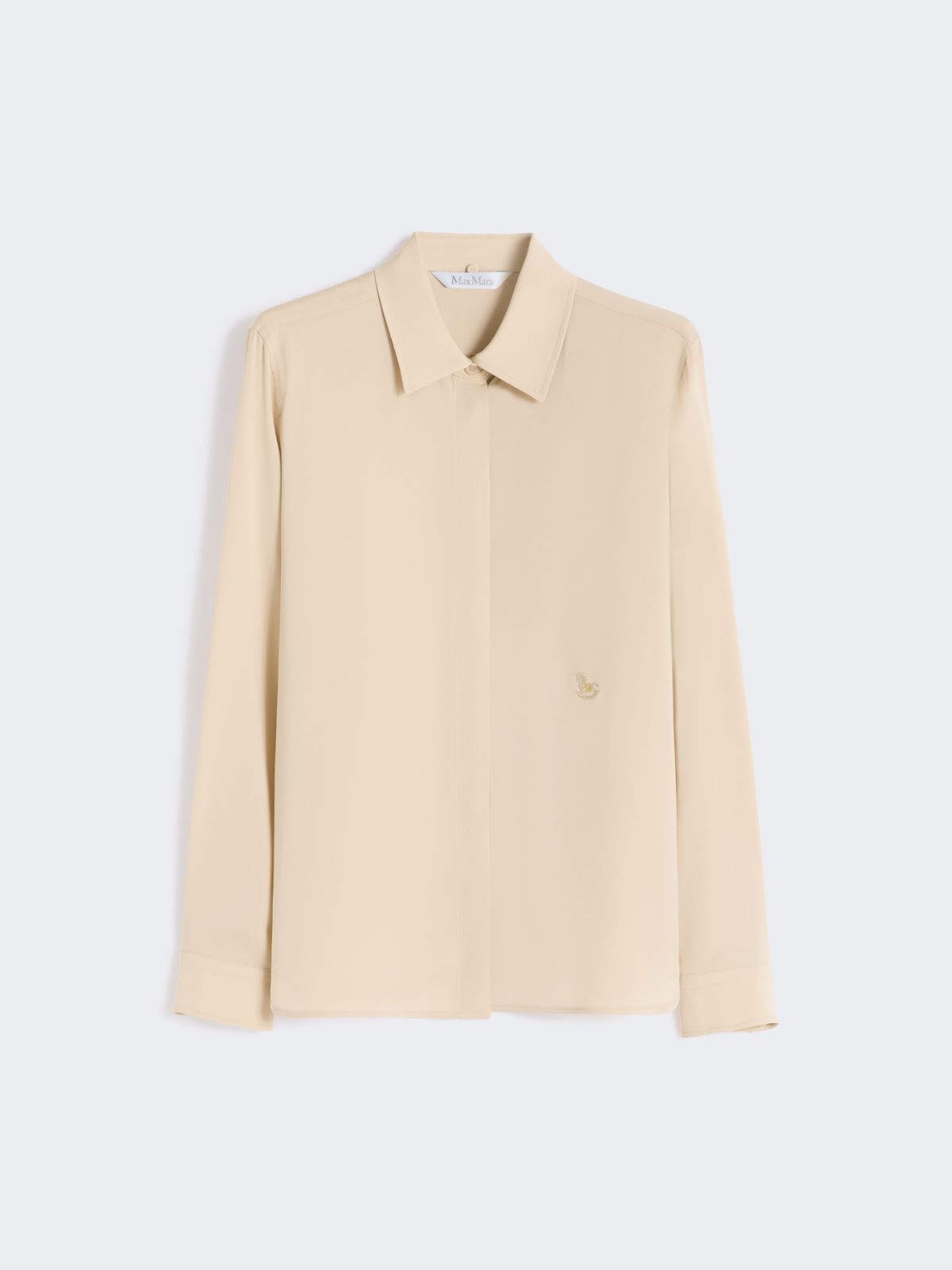 Mannish shirt featuring a removable matching neckerchief and tonal embroidered M Monogram detail on the front. - Shirt in heavy pure silk charmeuse fabric - Fitted waist - Shirt collar and double cuffs - Set-in sleeves - Concealed button fastening on the front - Darted yoke and a central pleat at the back - Rounded hem with side slits