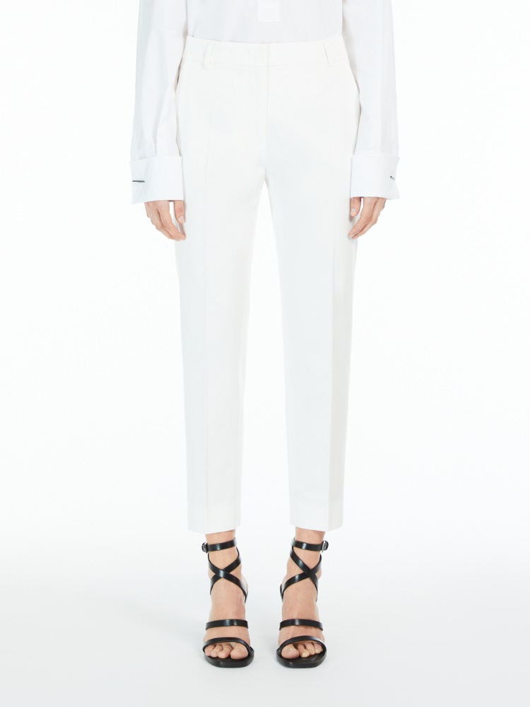 本款长裤,采用弹力棉质混纺缎面面料,饰有后口袋