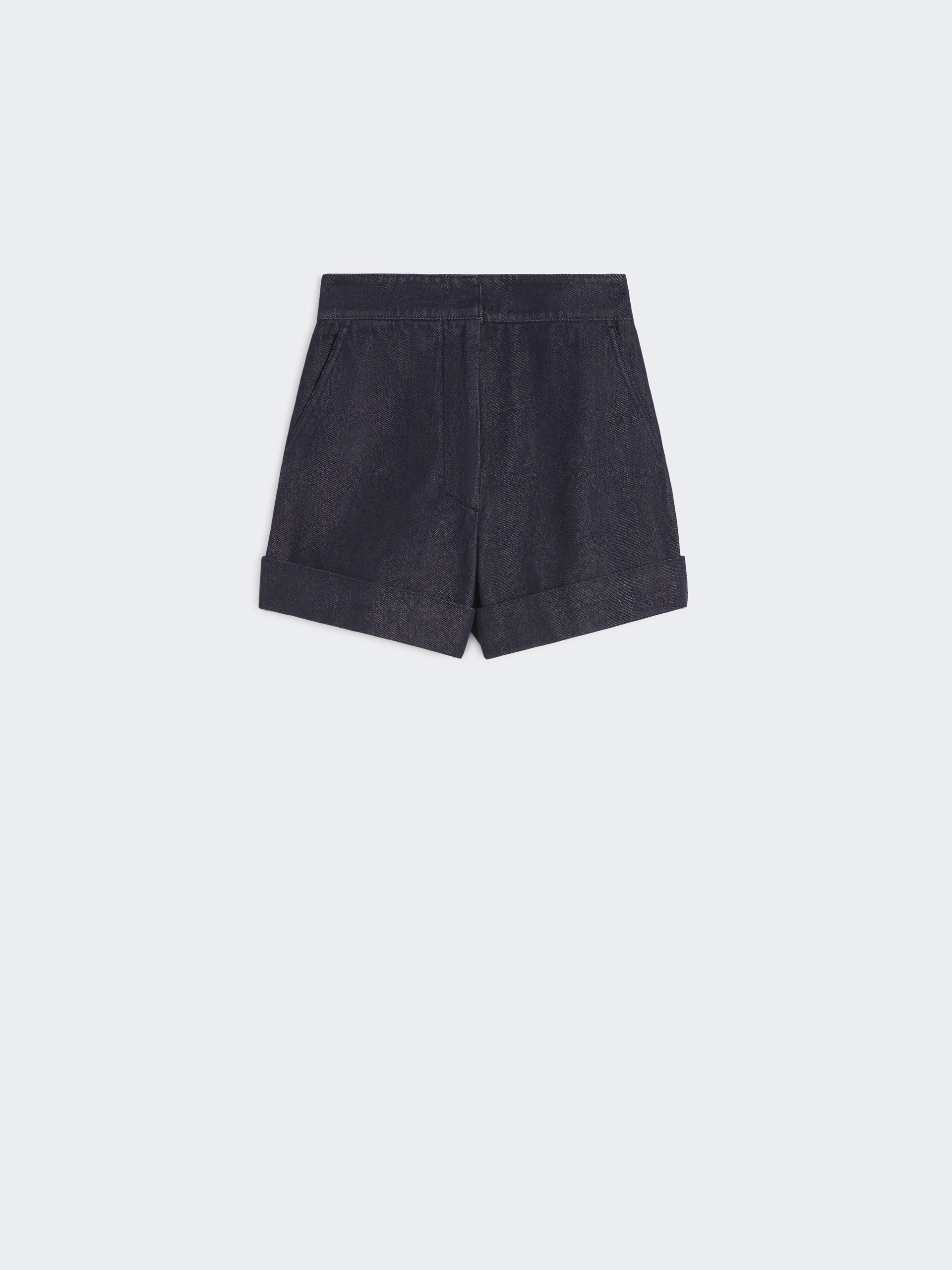 High-waisted shorts featuring tonal thread-embroidered Max Mara logo detail on the back of the waist. - Shorts in denim-look yarn-dyed pure cotton fabric - Slightly flared lines with turned-up hem - High-cut waistband with a fly-covered zip and hook-and-bar fastening - Slant side pockets - Welt rear pockets - Sewn darts on the back of the waist