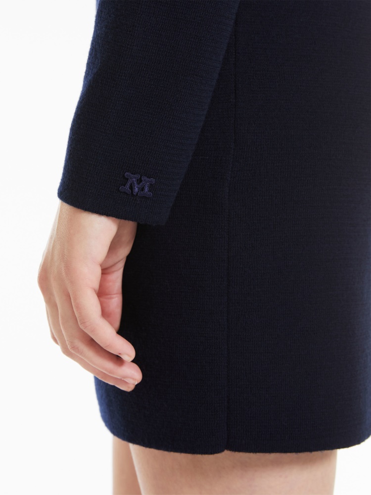 本款连衣裙,采用奢华的绵羊毛面料,修身剪裁,圆领和长袖设计,左袖袖口绣有M Monogram图案