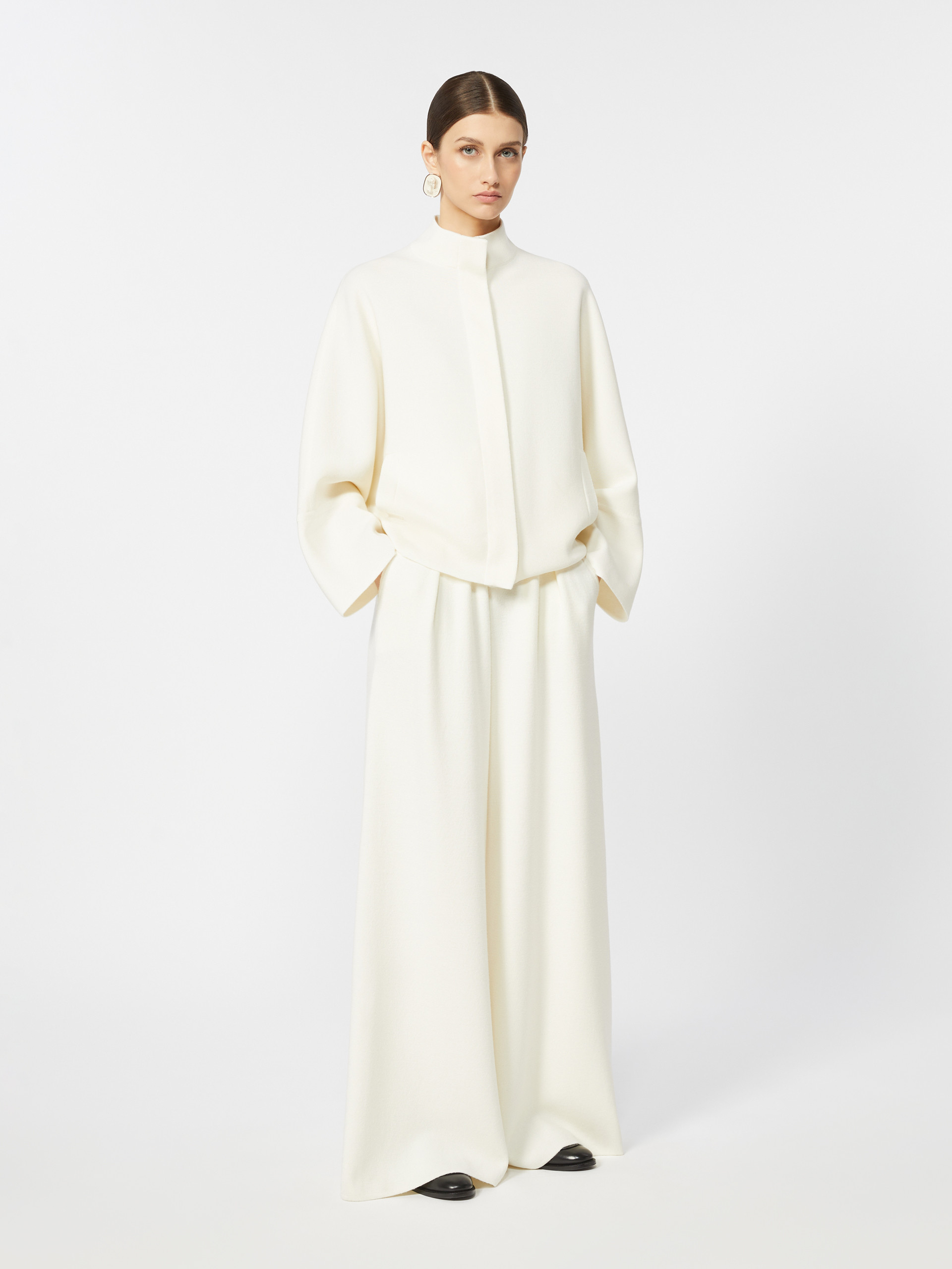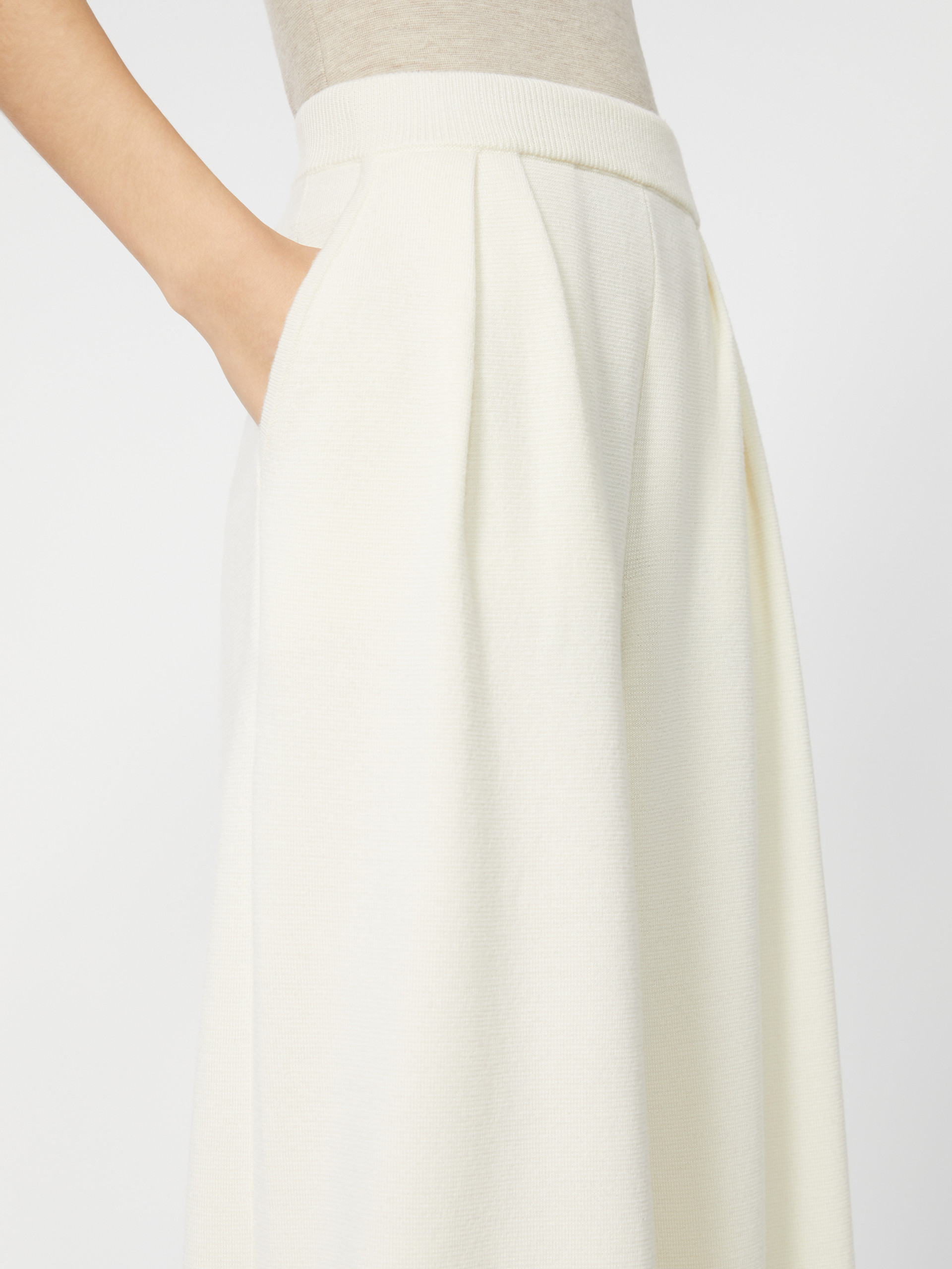 Wide-fit long trousers. - Trousers in full Milano-knit pure wool yarn - Wide leg - Ribbed elasticated waist - Slant side pockets - Double waist darts on the front