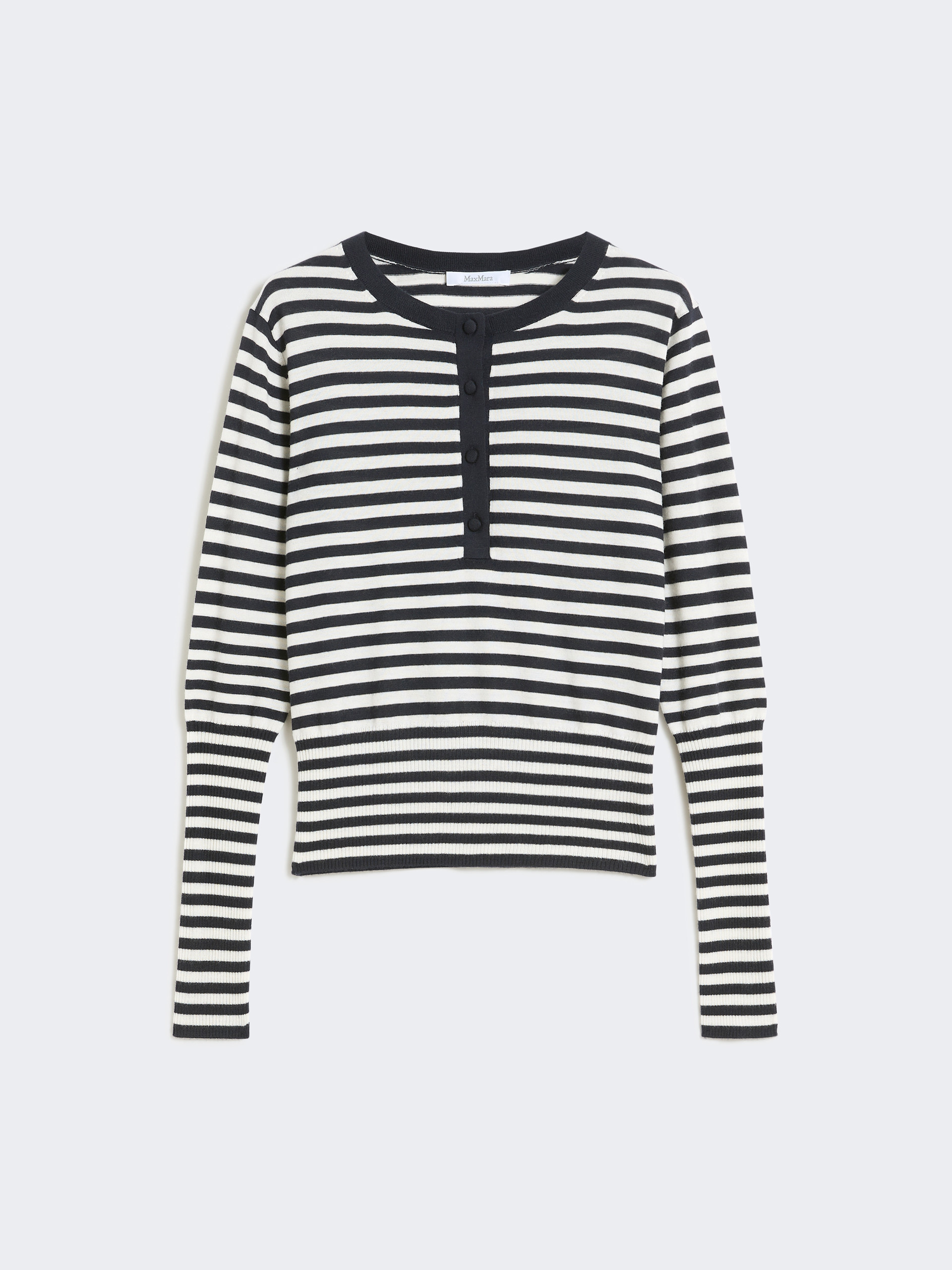 Seamless grandad jumper, featuring a combination of plain knit patterns, and ribbed at the hem. - Jumper in ultra-fine and lightweight pure cashmere yarn - Slim fit - Crew-neck with 4 knit fabric-covered buttons on the front - Long fitted sleeves - Straight hem