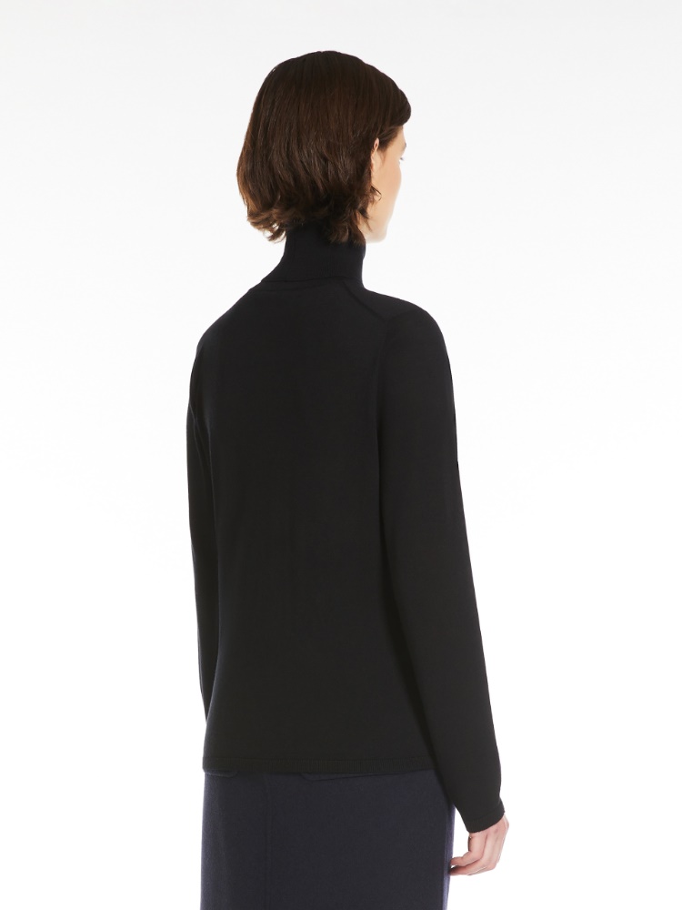 Turtleneck sweater in very light combed pure wool yarn. Regular fit model with high collar and long set-in sleeves.