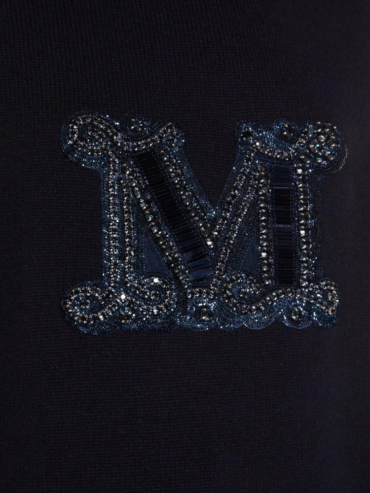 Fine wool and cashmere crew-neck jumper adorned with the M Monogram motif in sequins and rhinestones on the front. Slightly oversized volume garment featuring long low-set sleeves and ribbed edges.