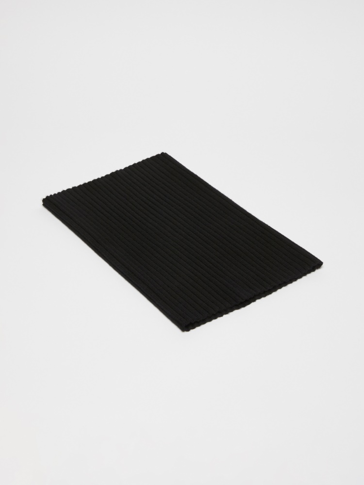 Fine wool and cashmere ribbed knit bandeau bustier. The incorporation of Lycra® fibre results in a remarkably soft and comfortable texture. Garment designed with a versatile fit that can be worn around the waist or draped softly around the neck.