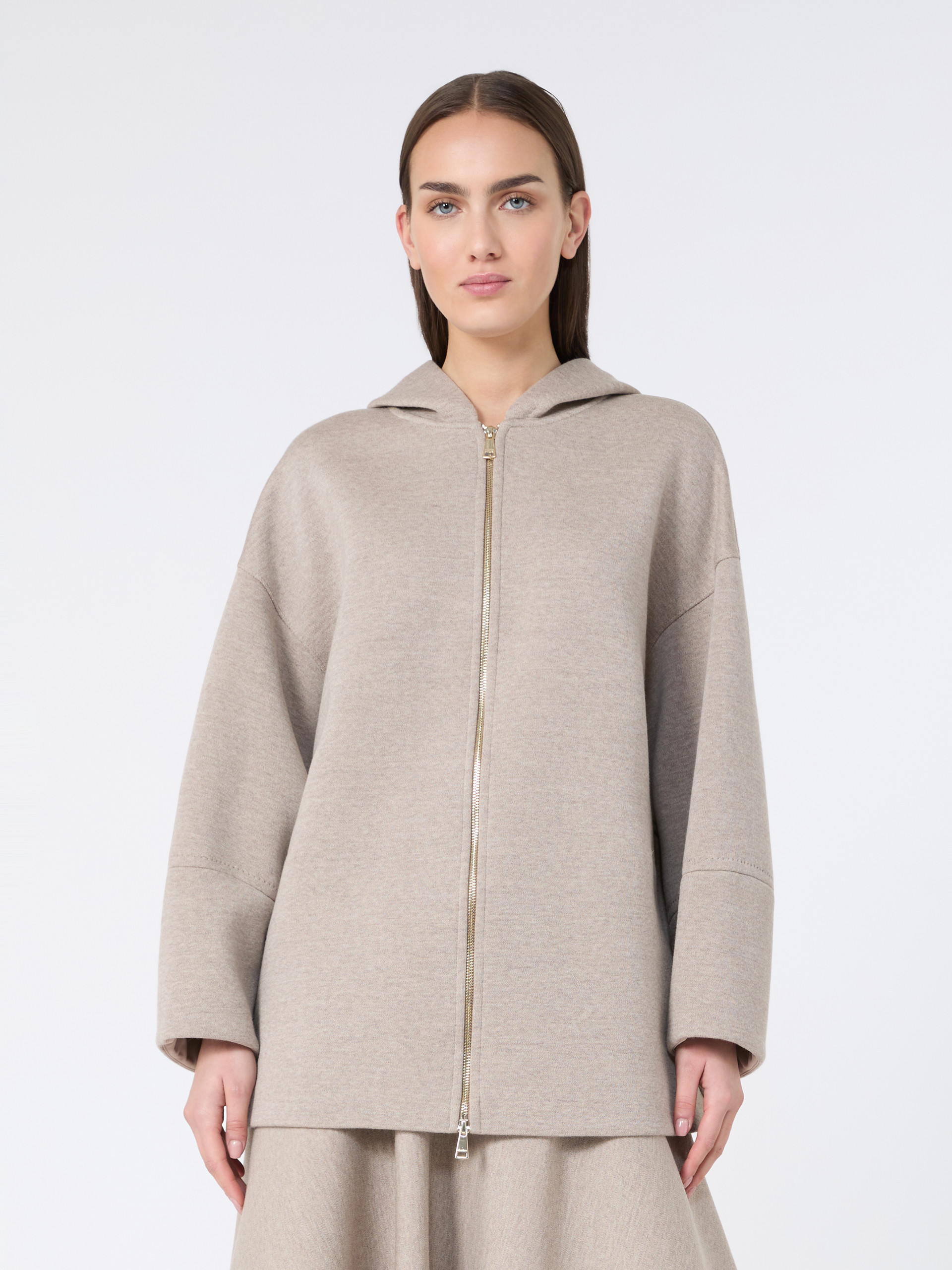 Oversized hoodie. - Technical wool jersey sweatshirt - Long low set-in sleeves - Front zip fastening with a branded pull-tab - In-seam side pockets - Embellished with horizontal dart detail at the elbows - Straight hem