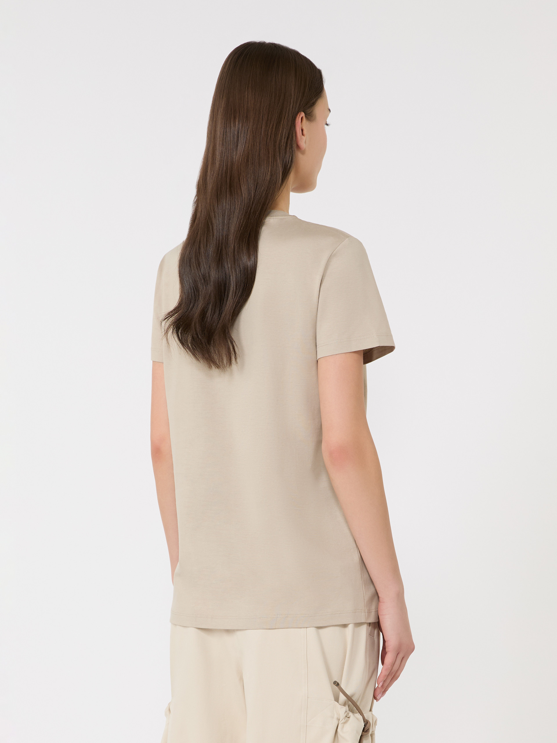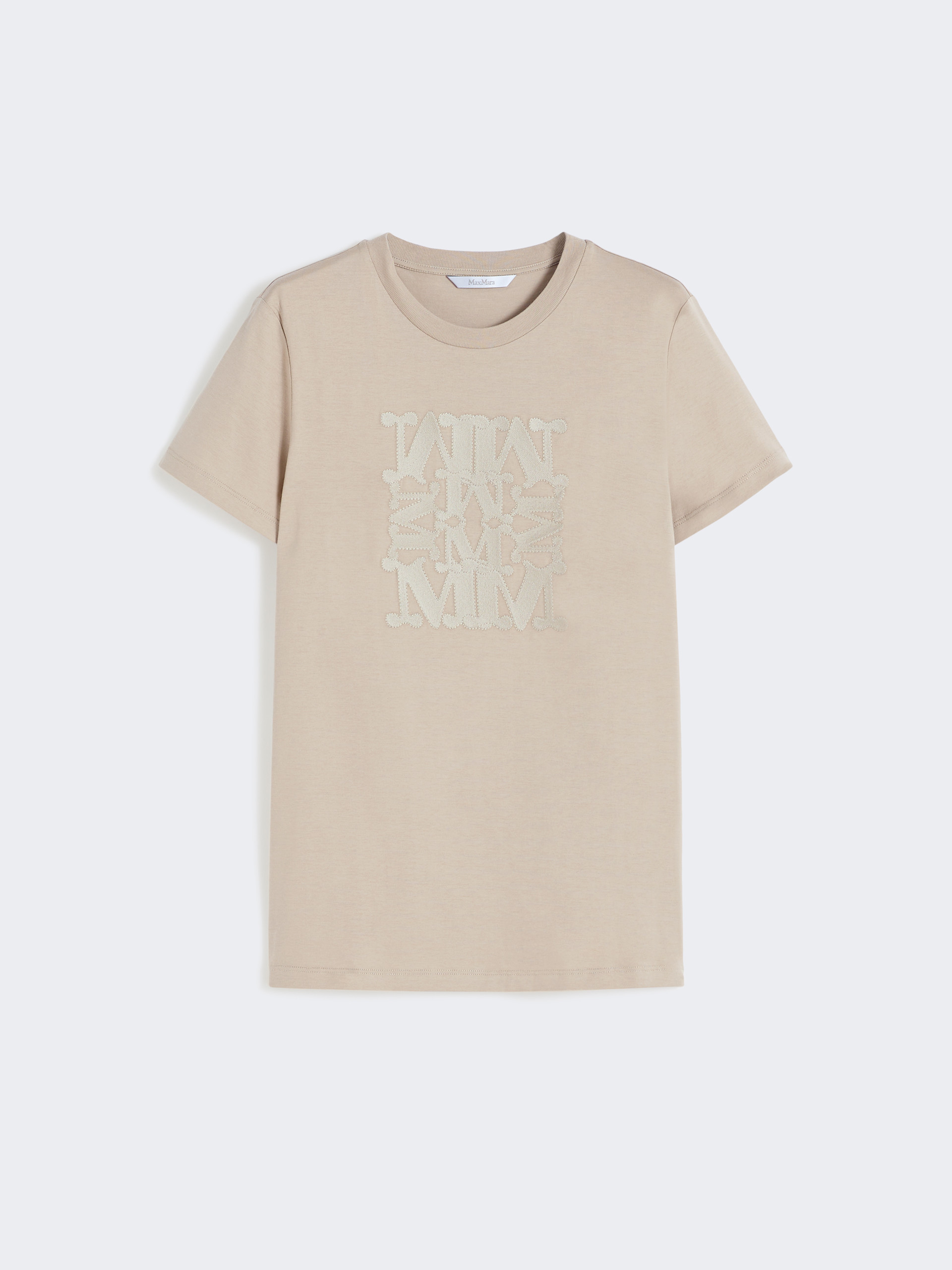 Basic T-shirt customised with thread-embroidered MaxMarabesque detail. - Cotton jersey T-shirt - Straight fit - Rib-knit crew neckline - Short set-in sleeves - Straight hem