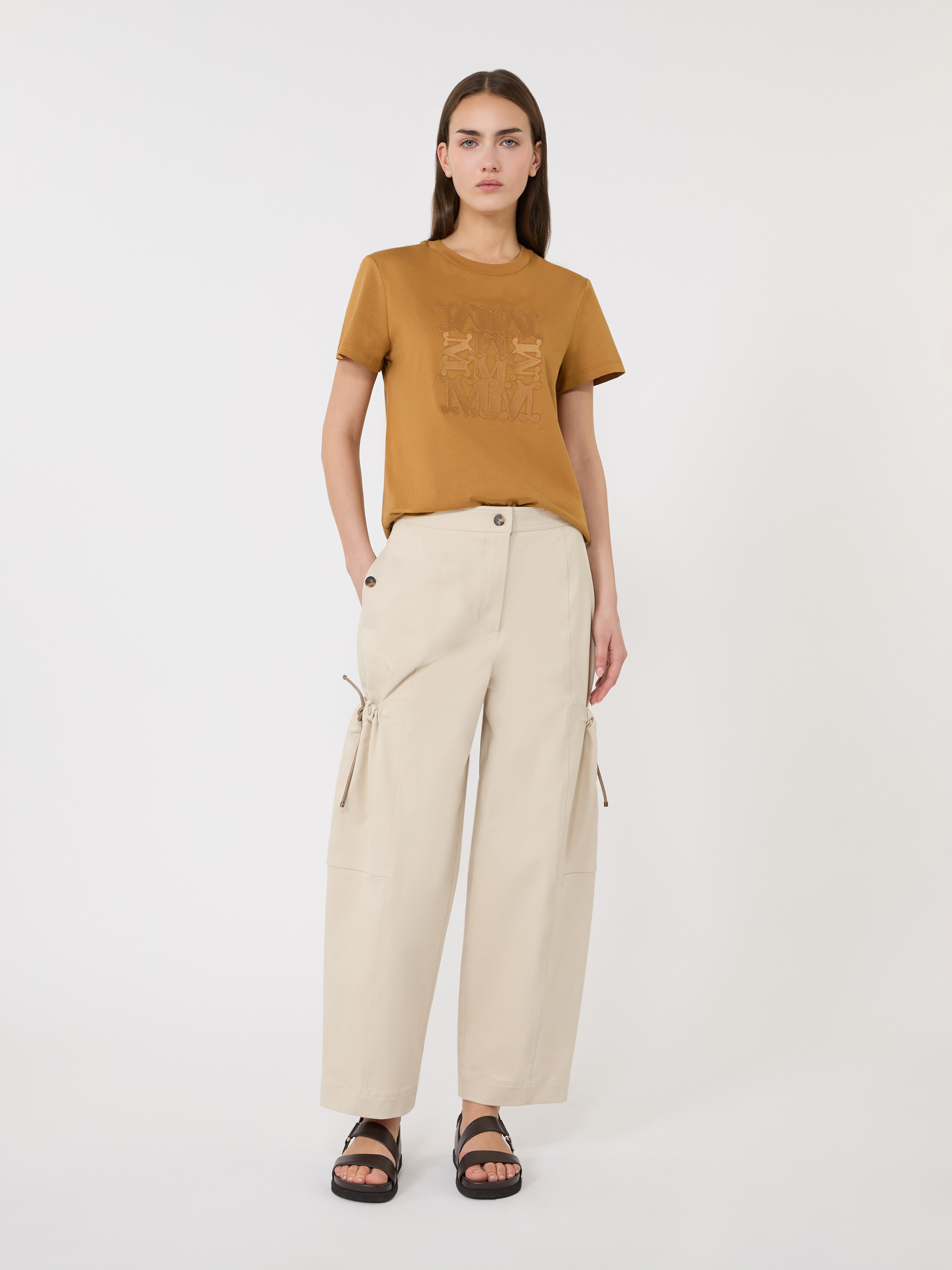 Basic T-shirt customised with thread-embroidered MaxMarabesque detail. - Cotton jersey T-shirt - Straight fit - Rib-knit crew neckline - Short set-in sleeves - Straight hem