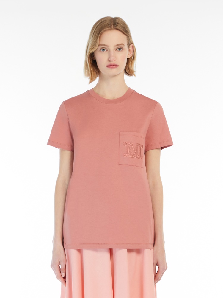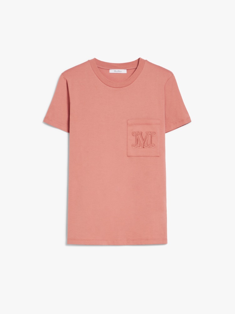 本款短袖圆领T恤采用柔软的棉质针织面料制成,直筒版型剪裁,胸前饰有一个小贴袋,并绣有M字样细节。