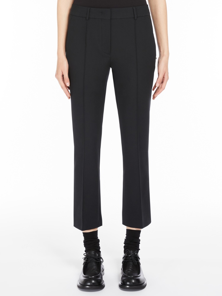 Stretch cotton trousers with low rise and flared leg. An iconic SPORTMAX design that features ribs on the front and visible stitching along the sides. Side slant pockets and back welt pockets complete the style. Covered fastening and tailoring-inspired preconstructed internal waistband.