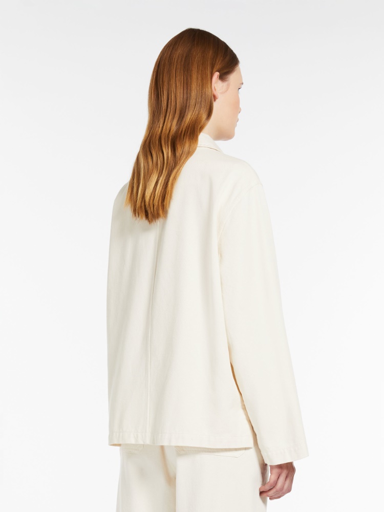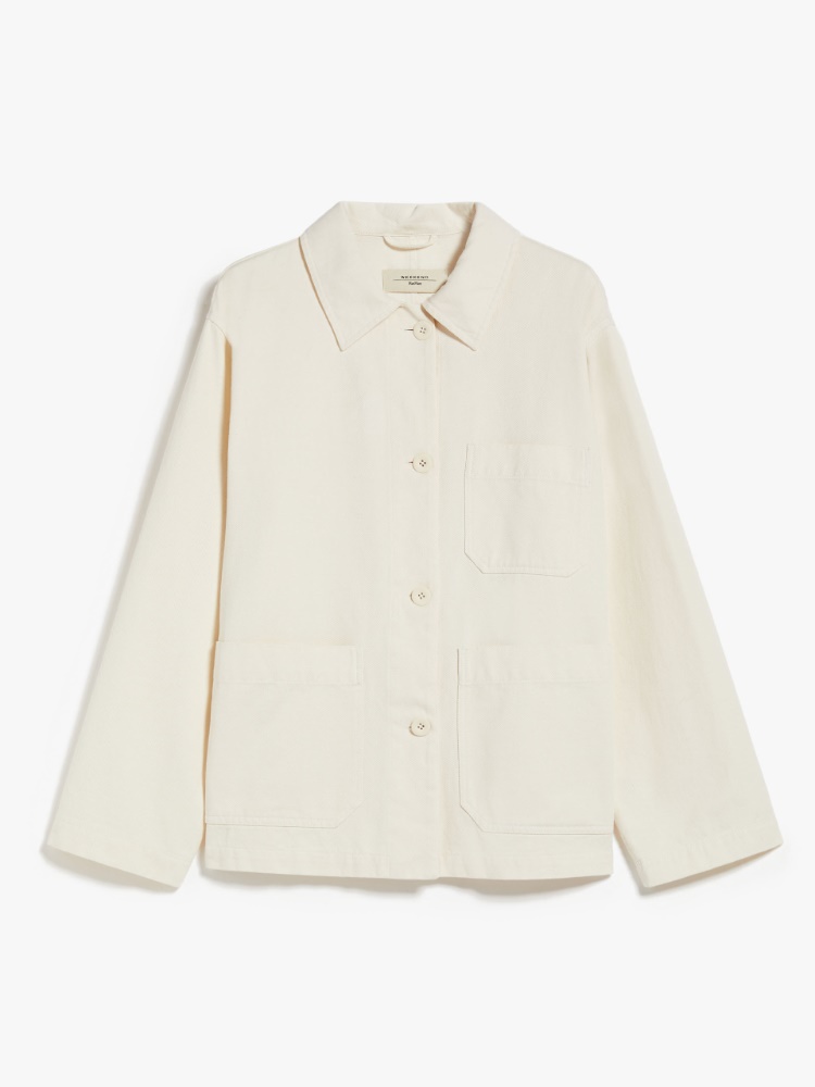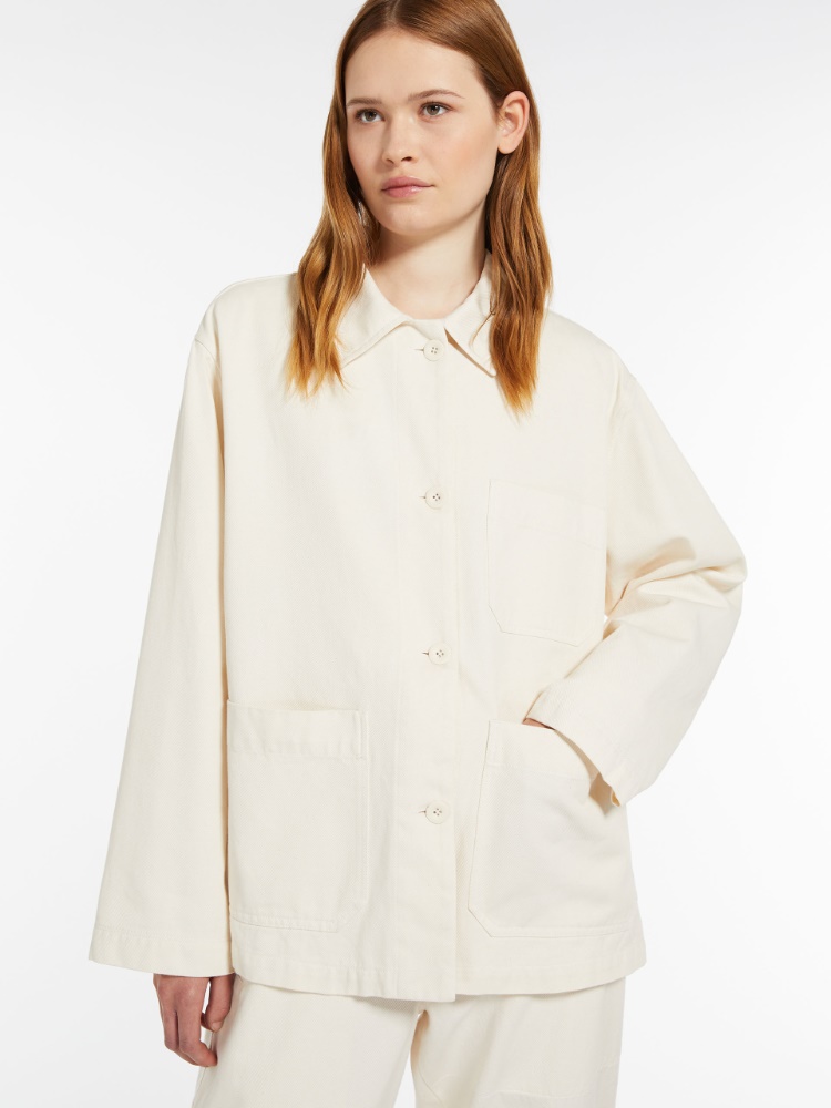 本款单排扣短外套,采用柔软棉质面料,直筒版型。饰有经典衬衫尖领和胸前贴袋。前襟纽扣开合。