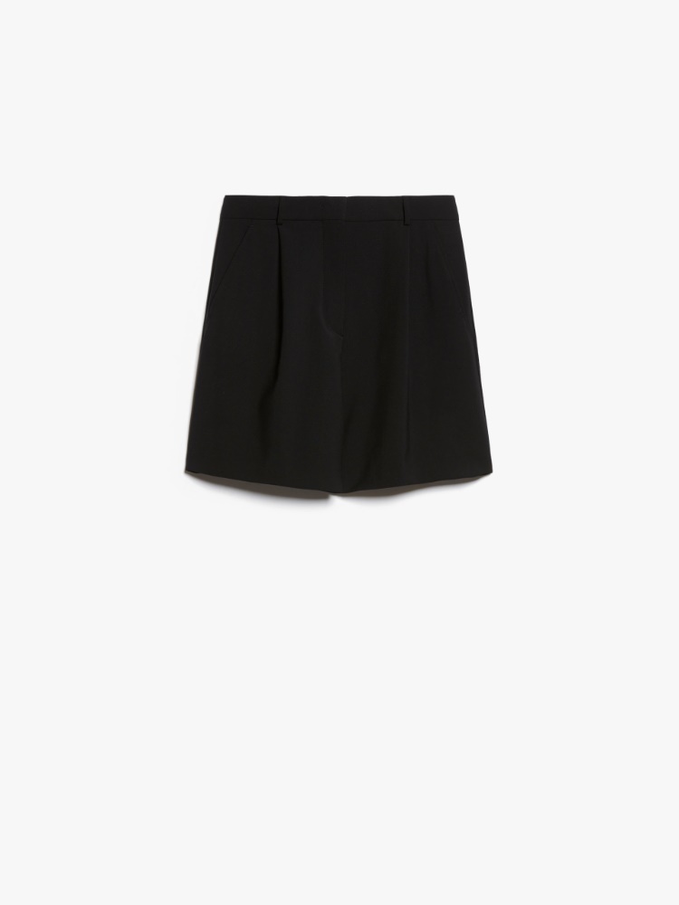 本款宽松百慕大短裤采用羊毛面料,饰有裤前褶皱、斜切侧袋和带扣后袋细节,使用拉链和钩扣开合。