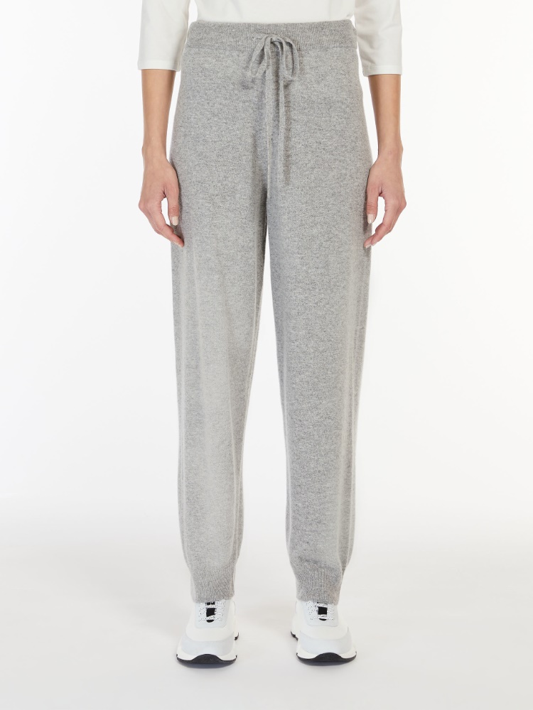 本款针织运动裤,宽松版型,配有腰部抽绳和罗纹针织脚踝饰边细节。