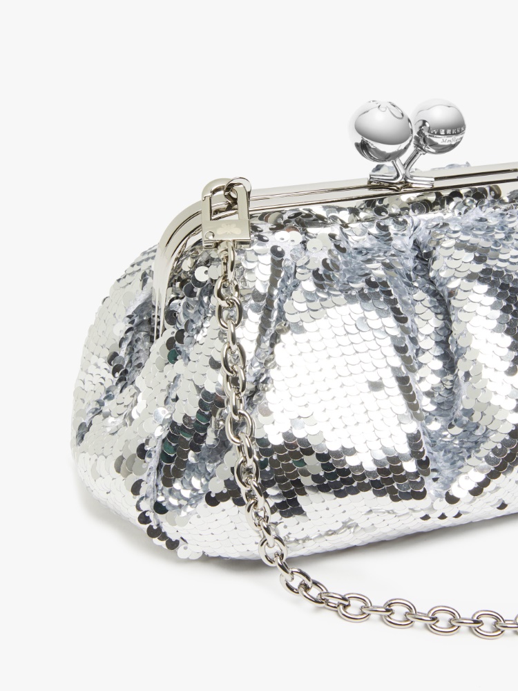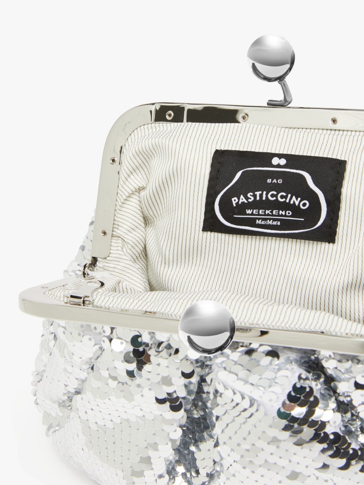 本款小号Pasticcino甜点包,由彩色可翻转亮片制成,颜色随着触摸变化,让您的造型与众不同。饰有可拆卸的链条肩带,带有皮革细节,满足多种背法。配有拉链和标志性手拿包开合,刻有蝴蝶徽标和 Weekend Max Mara 徽标。内有定制标签,为您的日常造型增添个性魅力。尺寸:19 x 10 x 15 厘