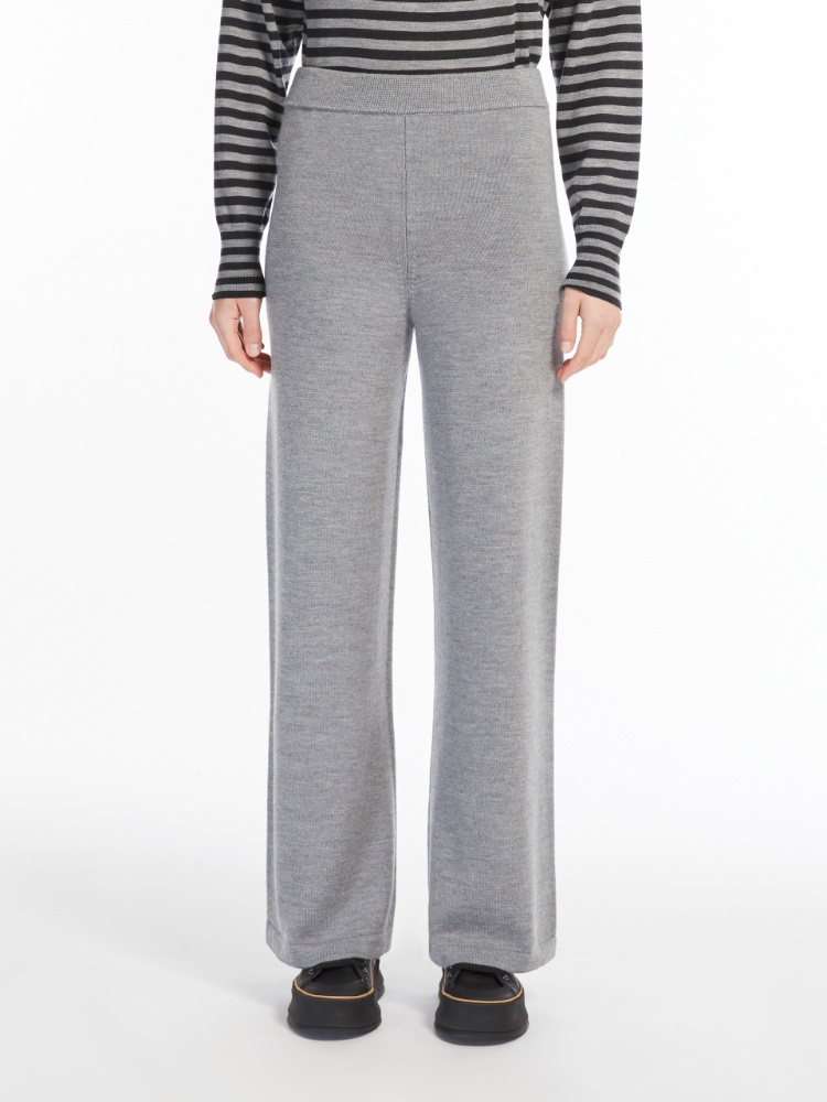 Straight trousers made of luxurious pure-wool yarn. The style is defined by a comfortable fit with an elasticated waist. The plain knit defines the garment’s texture.