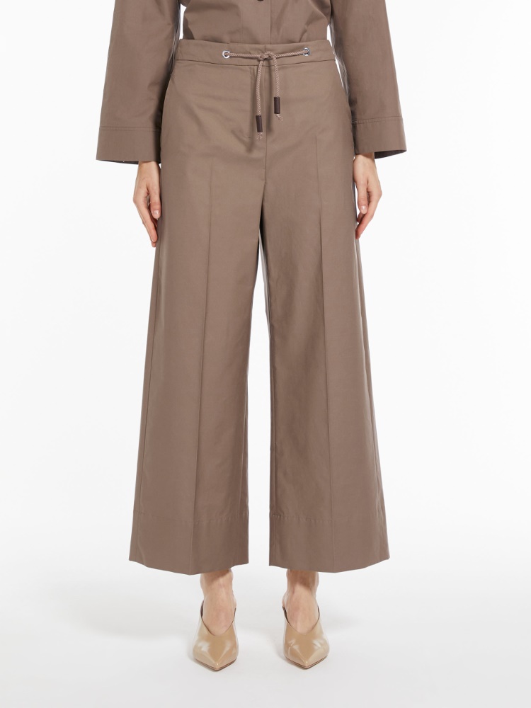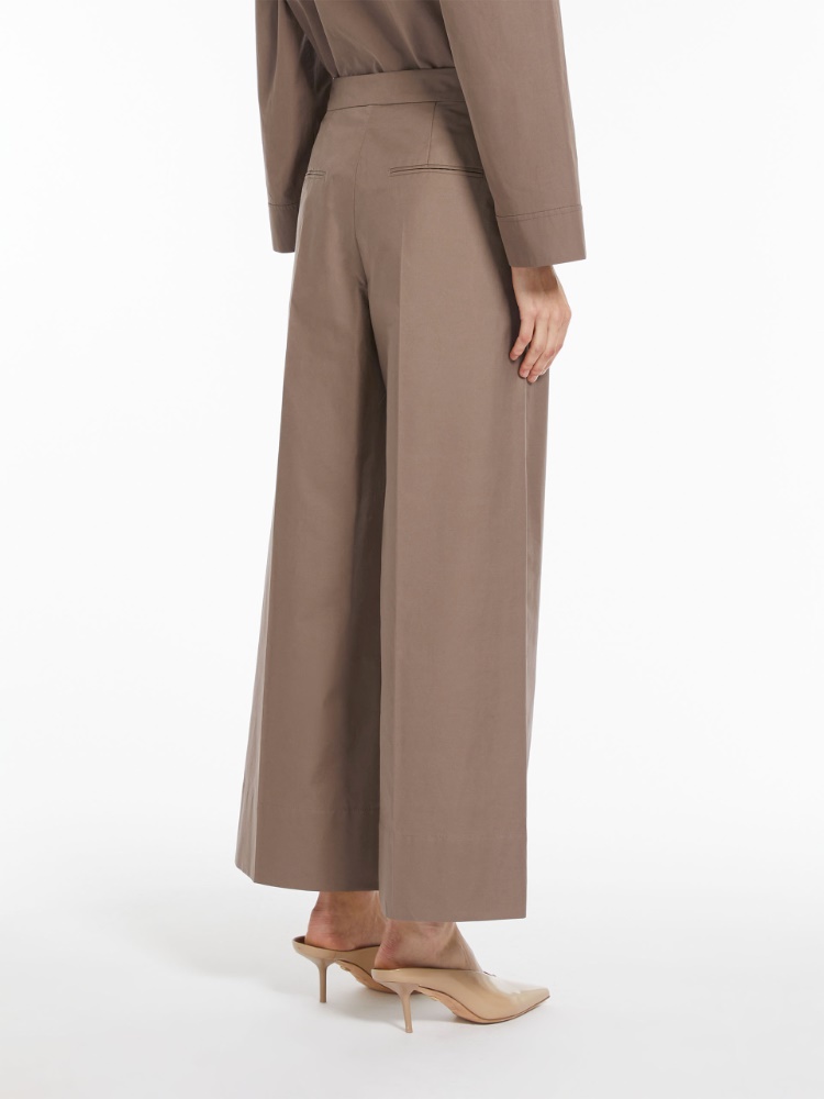 本款长裤,阔腿版型剪裁,裤脚饰有折痕,配有内嵌式侧袋和双开衩后袋。门襟拉链和小钩扣开合。