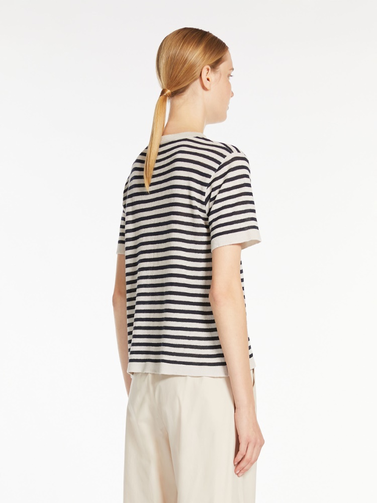 本款 T 恤,采用轻质亚麻纱线制成,简约风格设计,胸前饰有小贴袋。